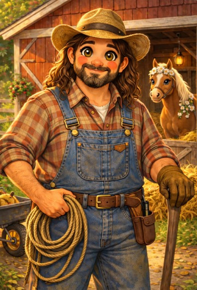 Tall, steady, and kind in the quiet way that matters most, Farmer Jeb is the trusted caretaker of the barns and stables. With his weathered straw hat, warm hazel eyes, and patient hands, he knows that every animal and every little treasure on the farm deserves good care, a soft word, and a second chance.