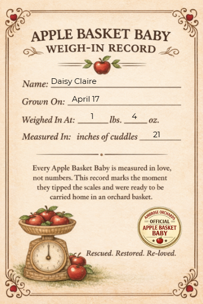 Thank you for giving Daisy Claire a place to belong. She has been loved here, and now she gets to be loved there too. That is the very best kind of journey.